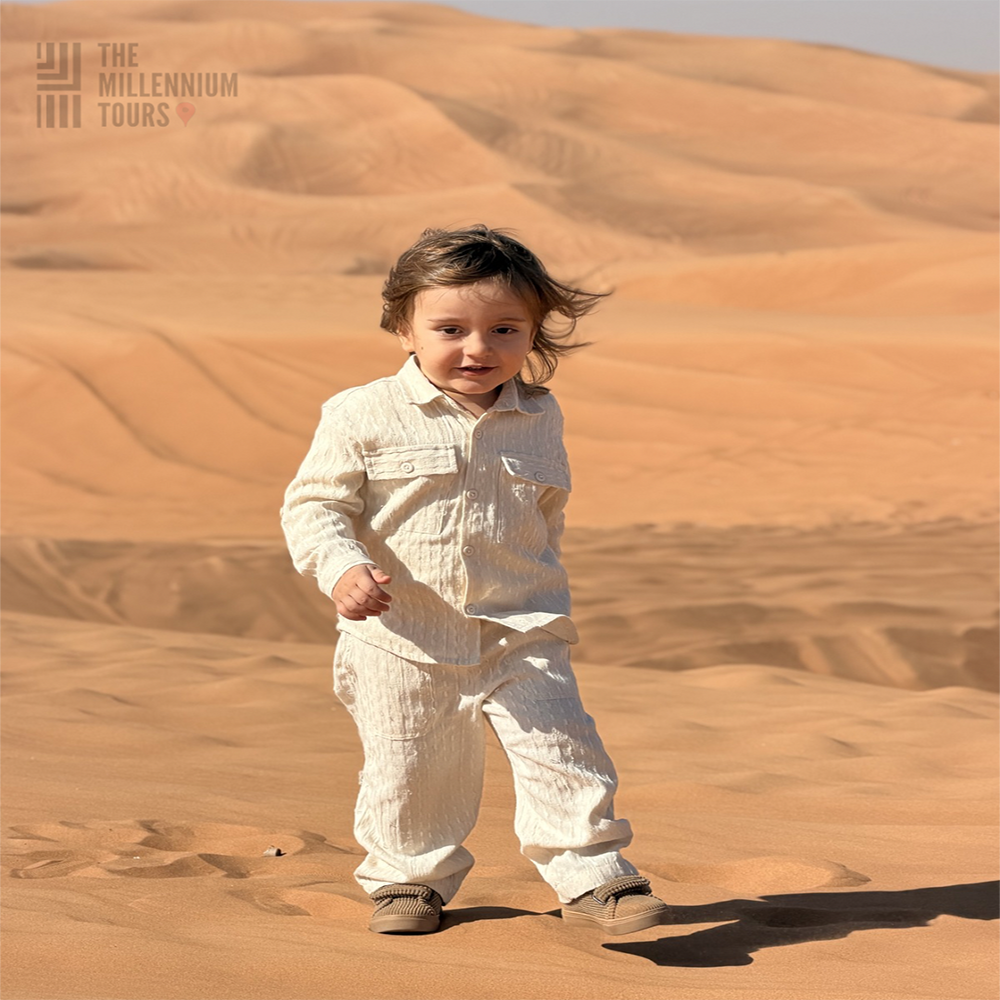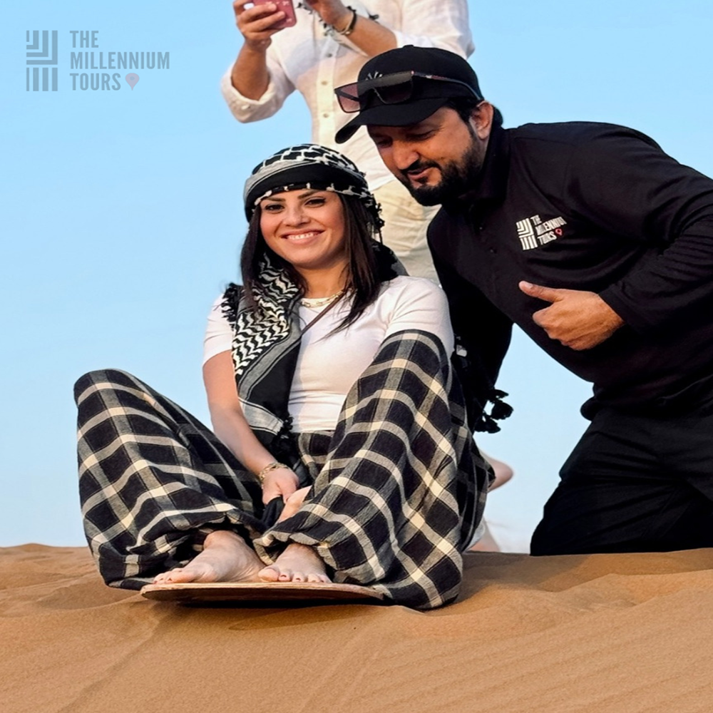 Your adventure begins with an exhilarating dune bashing session in a powerful 4×4 vehicle. Feel the adrenaline rush as our skilled drivers navigate the towering dunes, sending you on a heart-pounding ride filled with twists, turns, and breathtaking views. Afterward, take the wheel yourself with an exciting quad bike expedition across the endless sea of sand. Feel the freedom of racing over the dunes, discovering hidden gems of the desert landscape as you carve your own path.
